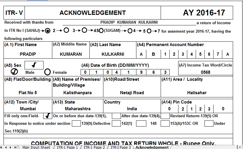 Download Automated Income Tax Return ITR -I (SAHAJ) for F.Y.2015-16 & A.Y.2016-17 [This Excel Based Software can prepare automatic ITR -I for F.Y.2015-16]